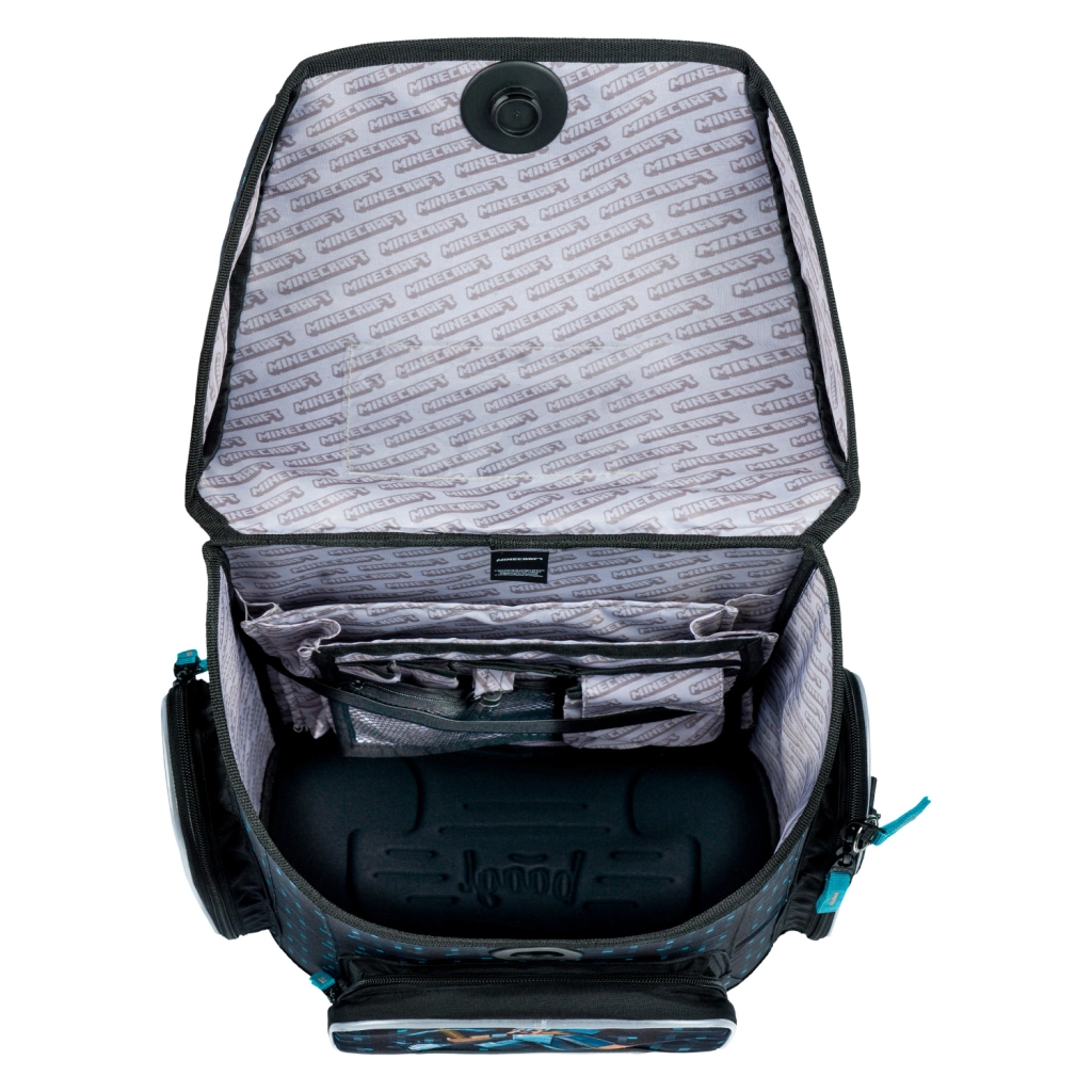 • Indvendigt findes en gennemsigtig lomme med skoleskema samt en indvendig organizer, der sikrer jævn fordeling af vægten.