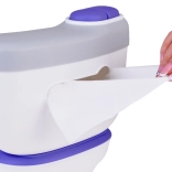Den bløde sædering og den ergonomiske form giver komfort og tryghed. Klaplåget lærer gode hygiejnevaner.