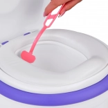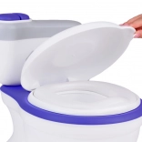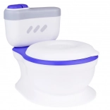 En realistisk børnepotte formet som et toilet med blødt sæde og opbevaringsboks til vådservietter hjælper børn med at klare pottetræningen på en legende måde. Ved tryk på knappen afspilles skyllelyd og glade melodier, den har en aftagelig beholder for nem rengøring, stabil konstruktion, og der medfølger også en rensebørste.