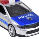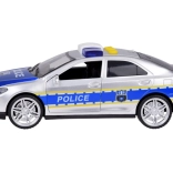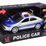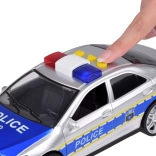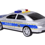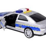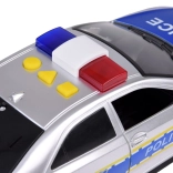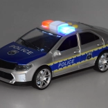 Realistisk politibil til små lovens vogtere med lys- og lydeffekter, åbningsbare fordøre og gummihjul med skridsikker overflade. Tre knapper aktiverer sirener, horn og motorstart-lyd. Kompakte mål 24 × 12 × 9 cm, strømforsyning 2× AAA (inkluderet).