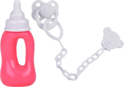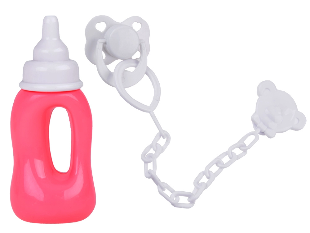 Sættet indeholder også en sutteflaske og en lille figur på en nøglering med klips. Hele sættet ser usædvanligt imponerende ud.