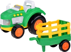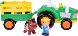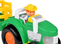 Forvandl værelset til en lille bondegård med en farverig traktor og en aftagelig anhænger. Robust plastkonstruktion, let greb og interaktive elementer med lyd og lys understøtter fantasi, historiefortælling og udvikling af finmotorik.