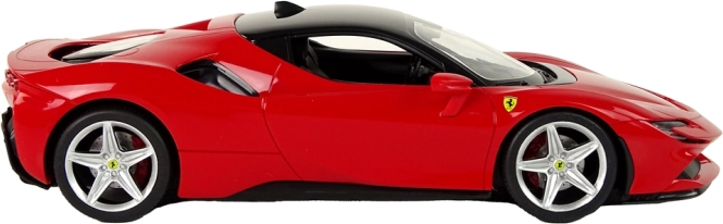 Detaljeret karrosseri, autentiske proportioner og rød lak gør modellen FERRARI SF90 til et attraktivt samler- og legeobjekt.