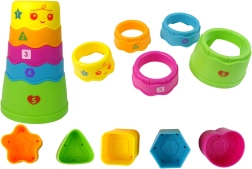 - Et 5-etagers tårn/pyramide med åbning til kugler – byg fra den mindste til den største.