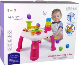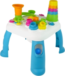 Det farverige, interaktive bord til de mindste kombinerer leg og læring. Det byder på lyseffekter, formsorter, kuglebane, roterende tandhjul og aftagelige ben. Understøtter finmotorik, genkendelse af former og farver samt sanseudvikling. Stabil og sikker konstruktion af ikke‑giftige materialer glæder børn fra 18 måneder.