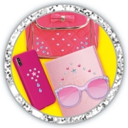Forvandl hverdagsgenstande til unikke stykker! Sættet med applikator og 80 glimtende sten gør det nemt og sikkert for børn at sætte pynt i håret og på forskellige glatte overflader. Takket være det selvklæbende lag er påføringen hurtig og uden rod.