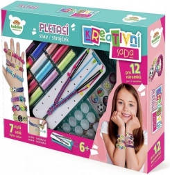 Dette kreative armbåndssæt er et ideelt valg til børn, der elsker at skabe, farver og modeaccessories. Med det overskuelige vævestativ er fletning let og sjovt, selv for begyndere. Af garn og tilbehør kan børn lave op til 12 armbånd i forskellige stilarter og farver – fra simple striber til fantasifulde mønstre med klistermærker.