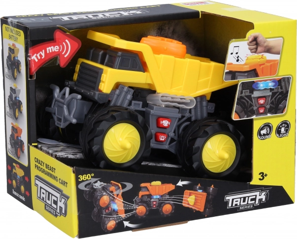 Opdag den sjove lastbil med tippefunktion på 15,5 cm, som vil begejstre dine børn med lys-, lyd- og bevægelseseffekter. Enkel betjening med knapper på ladet og i siden, batterier 3x AAA medfølger – klar til leg med det samme.