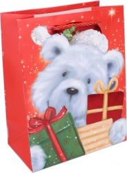 Stilfuld julegavepose i størrelse S med målene 18 × 23 × 10 cm, ideel til mindre gaver. Fås i 4 festlige varianter med solid udførelse for sikker og elegant overlevering af gaver.