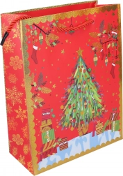 Denne gavepose er designet til dem, der vil glæde deres kære med elegance og stil. Fremstillet af kvalitetspapir sikrer den styrke og holdbarhed ved transport af gaver. Posens design er inspireret af juletemaet og hjælper med at skabe den rette festlige stemning.