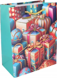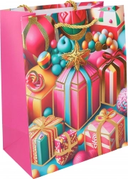 Denne julegavepose sparer dig tid på indpakningen og giver samtidig dine gaver et repræsentativt udseende. Størrelse L er velegnet til større gaver, tøj, bøger eller sæt med kosmetik. Kvalitetsmateriale og robuste hank gør transporten behagelig.