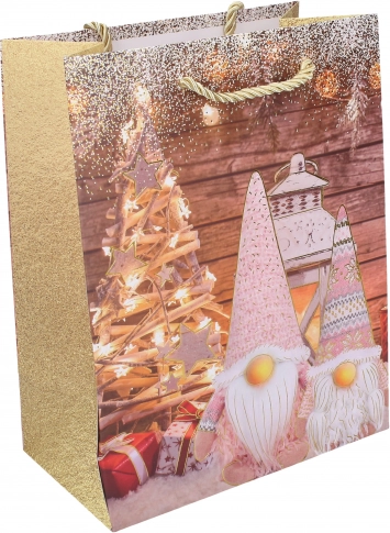 Stilfuld julegavepose i størrelse M, der imponerer med solid udførelse og alsidig anvendelse. Ideel til hurtig og elegant indpakning af gaver. Fås i 4 varianter af motiver. Robust papir, praktiske mål og festligt design for bekymringsfri indpakning.