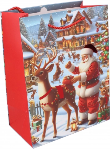 Stilfuld gavepose i størrelse L med målene 32 × 41,5 × 12 cm, ideel til indpakning af større gaver. Den byder på julemotiv, solid udførelse og nem transport. Fås i 4 varianter af motiver for den perfekte højtidelige stemning.