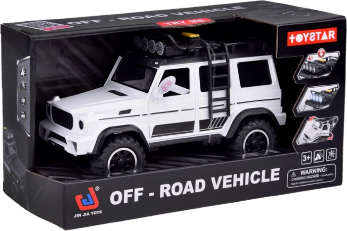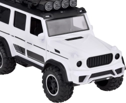 Tag på eventyr med OFF-ROAD terrængående bil, som kombinerer robust konstruktion og interaktive funktioner. Med skinnende LED-lys og lyden af horn og alarm bliver legen endnu mere realistisk. Åbnende fordøre og detaljeret udførelse fremhæver bilens attraktive udseende.