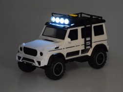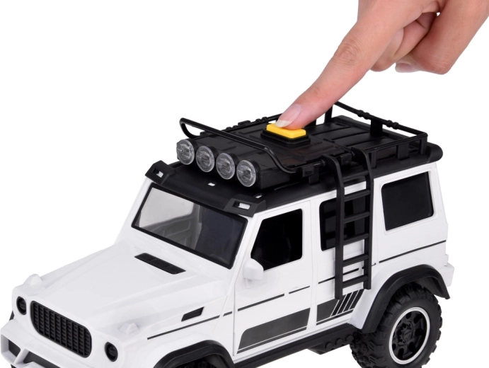 Når den øverste knap trykkes, tændes LED-lys, og horn eller advarselssignaler lyder – en oplevelse som i en ægte offroader.