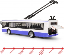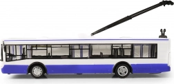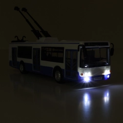 Oplev bytransportens sjov med den blå trolleybus, der taler tjekkisk og afspiller holdepladsannonceringer ved åbning af dørene. Realistiske detaljer i skala 1:43 og en længde på 28 cm gør den til både en flot model og et robust legetøj til daglig leg.