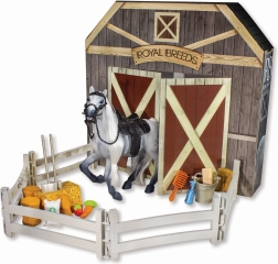 Hest Royal Breeds med indhegning er det perfekte tilbehør til enhver lille hesteelsker. Sættet indeholder et varieret tilbehør, der fremmer kreativ leg.