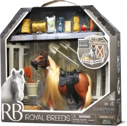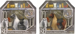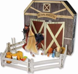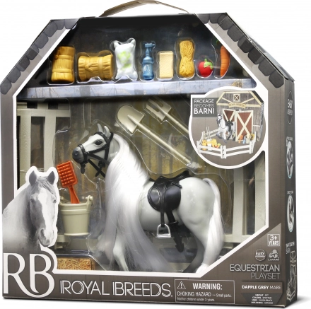 Dette sæt indeholder Hest Royal Breeds på 17 cm med interaktive funktioner, der vil fascinere ethvert barn. Den åbne bagside af emballagen udvider lege mulighederne og transformeres til en stald: