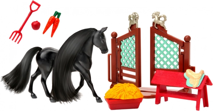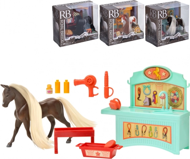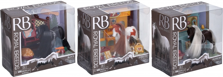 Forelsk dig i det fantastiske sæt med Royal Breeds-hest, tilgængelig i tre forskellige varianter, hver med unikt udstyr.
