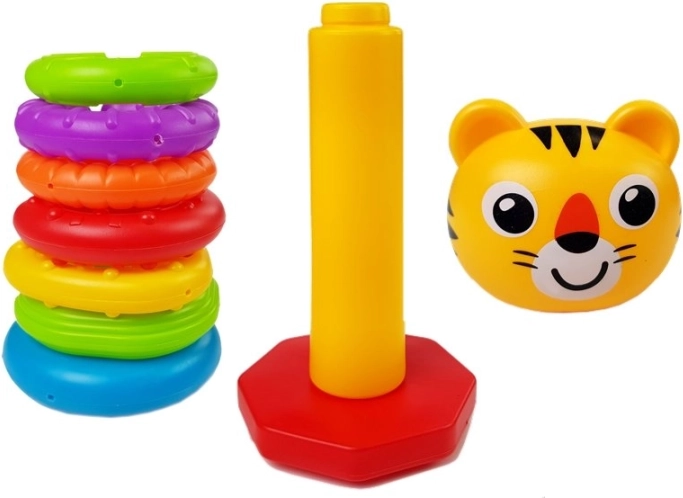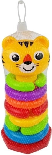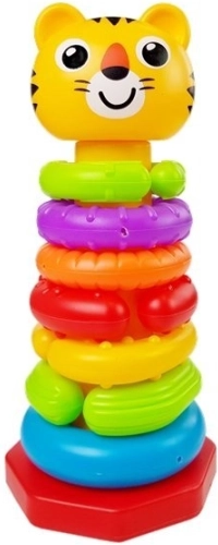 Denne regnbuefarvede stabelpyramide er ideel til barnets første udforskning af verden. Børn kan træde ringe i forskellige farver og former på, bygge, vælte og prøve nye kombinationer – leg uden regler, som naturligt udvikler kreativitet og logisk tænkning. Det mindste bæger med tiger‑motiv giver legetøjet et sødt udtryk og inviterer til leg.