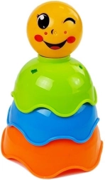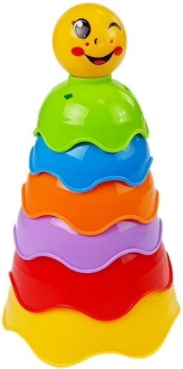 Legepyramide i regnbuefarver af stabelkopper, der understøtter barnets udvikling allerede fra de første måneder. Kopperne er lavet af kvalitetsplast uden skadelige stoffer, har glatte, afrundede kanter, og øverst er den mindste kop med et glad ansigt. Legetøjet udvikler finmotorik, hånd–øje-koordination, farve- og formgenkendelse samt logisk tænkning.