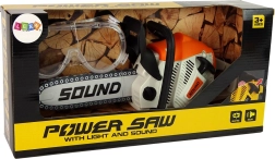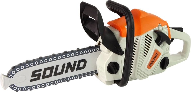 Saven er udstyret med lydeffekter, der efterligner en rigtig motorsav.
