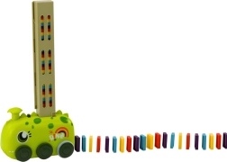 Oplev fornøjelsen med vores grønne bil i DINOSAUR-form, der automatisk lægger farverige dominoer. Denne smarte bil bevæger sig i forskellige retninger, mens den placerer dominoer i forskellige former og mønstre. Giver børn mulighed for at kreere egne baner og udvikle fantasi og logisk tænkning.