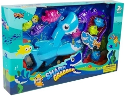 Haj med interaktivt mundmekanisme for nemt greb og "fiskeri" af fisk. Blåt design med øjne- og tænder detaljer, der inspirerer til leg.