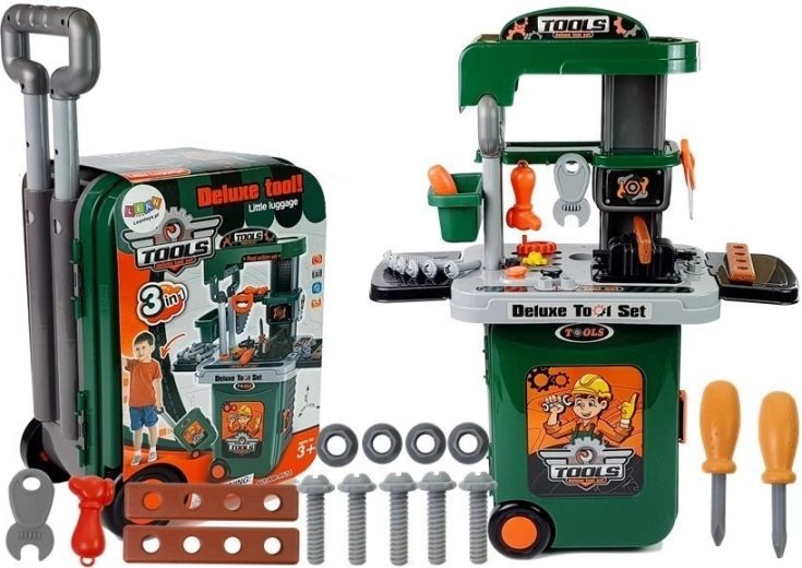 Hvis dit barn gerne hjælper far med gør-det-selv, er dette bærbare sæt ideelt. Værkstedet i en kuffert er en perfekt ting, som det nu kan tage med sig overalt. Det udtrækkelige håndtag og hjulene på bagsiden gør det nemt at trække den med sig. Når kufferten åbnes, er alle dele indeni, som barnet kan bruge til at skabe sit eget værksted. Det optager ikke meget plads. Den største fordel ved sættet er det store antal dele, så dit barn kan reparere mange legetøj på gør-det-selv-måden.