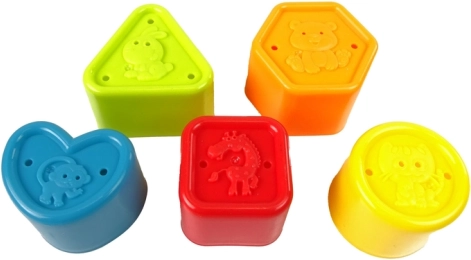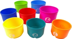 Farverige kopper, perfekte til stabling og leg i vand. De hjælper med at udvikle barnets finmotorik.
