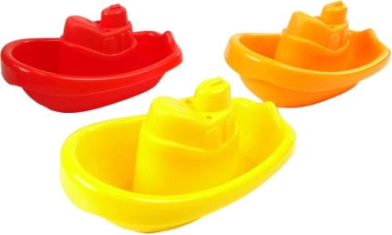 Tre farverige små både er ideelle til leg i badekarret, sikrer sjov sejlads og stimulerer fantasien.