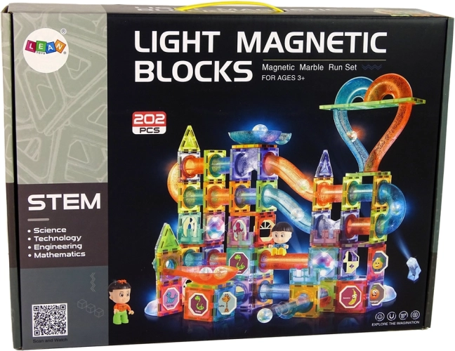 Oplev kreativ leg med et byggesæt, hvor magnetiske klodser kombineres med en lysende kuglebane. Sættet med 202 dele styrker finmotorik, kreativitet og logisk tænkning. Takket være LED-elementer og reflektorer er kuglernes tur endnu mere fascinerende – selv i mørke. En fantastisk gave til børn fra 3 år med sikre, certificerede materialer og enkel magnetisk samling.