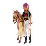 Dukken har bevægelige led til naturlige positurer og nem placering i sadlen. En ridehjelm og tøj medfølger, så hun er klar til både tur og konkurrence.