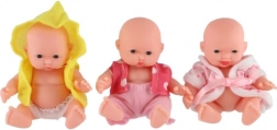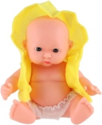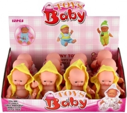 Den søde babydukke på 12 cm med fast plastkrop og tekstilbeklædning vil glæde enhver lille omsorgsperson. Findes i 3 forskellige typer, stimulerer fantasi og rolleleg og er egnet fra 3 år. I en praktisk displayæske med 12 stk.