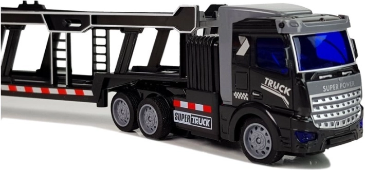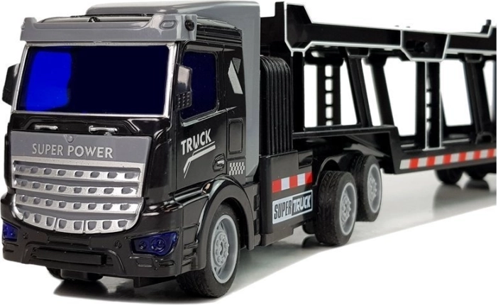 Dette detaljerede bugseringssæt giver børn en autentisk oplevelse af at styre en trækkende lastbil med trailer til biltransport. Robust udførelse i kvalitetsplast, LED-forlygter og nem betjening øger både sjov og realisme. Takket være de kompakte mål passer sættet perfekt til enhver bane på børneværelset.
