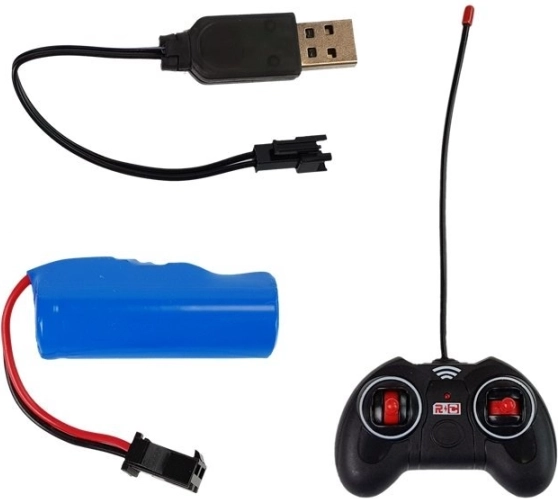 Sættet er klar til kørsel – i pakken finder du bugseringslastbil med trailer, 27 MHz fjernbetjening, USB-oplader og genopladeligt 3,7 V batteri. Fjernbetjeningen bruger to AA-batterier (medfølger ikke). Legetøjet har CE-certificering og opfylder EN 71, så du kan være tryg ved legen.