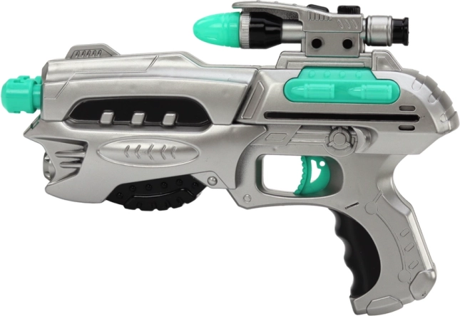 Ved tryk på aftrækkeren aktiveres lyseffekter og skudlyde, som understøtter spændende, men sikker leg i rummet.