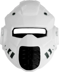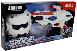 Dette sæt med rumudstyr er en fantastisk gave til små sci‑fi‑fans. Den farvede kombination af dæmpede toner med røde og koralfarvede accenter fanger øjet med det samme. Pistolen lyser og afgiver lyde, når aftrækkeren trykkes ned, og gør sig særligt bemærket i mørke. Masken i hvid‑grå udførelse har et rektangulært øjenvisir, åbninger ved munden og en elastisk rem for behagelig og sikker pasform.