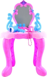 Dette smukke toiletbord er ideelt til alle små prinsesser. Det bringer magi takket være en fungerende føntørrer og lys på toppen af spejlet, der lyser og spiller efter at batterierne er indsat. Pakken indeholder kam, halskæde, 3 ringe, klistermærker og andre kreative tilbehør.