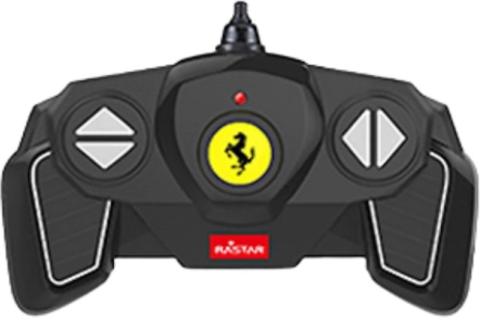 Fjernbetjeningen gør det nemt at styre din Ferrari-model. Den muliggør bekvem kontrol af bilens bevægelse frem og tilbage.