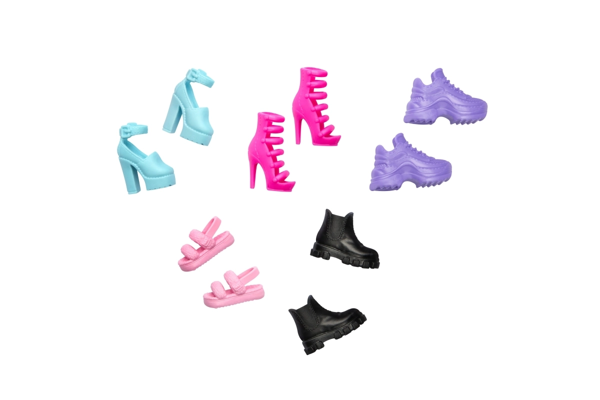 Klar Barbie-dukken på til enhver lejlighed med denne skokollektion inspireret af de nyeste fodtøjstendenser! Sættet indeholder en blanding af farver og stilarter som høje hæle, støvler og sneakers og rummer fem par Barbie-sko for modeleg og alsidighed! Skoene passer til de fleste Barbie-kropstyper. Alder 3+!