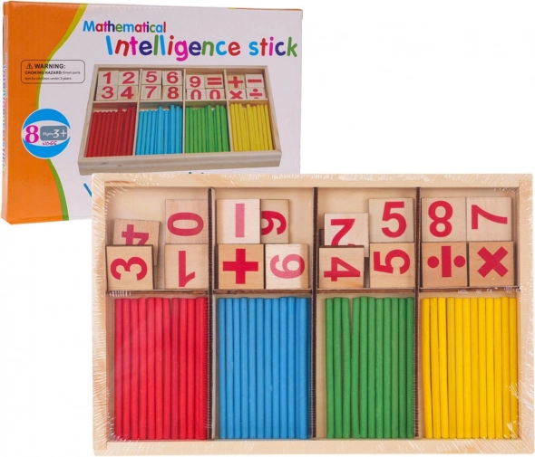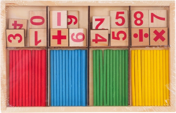 Et sjovt og lærerigt sæt til børn fra 3 år, der udvikler logisk tænkning og finmotorik. En træbase med rum, farvede stave og klodser med tal og regnestykker hjælper med at træne addition, subtraktion, multiplikation og division. Det holdbare trædesign sikrer lang levetid og sikker leg.