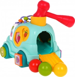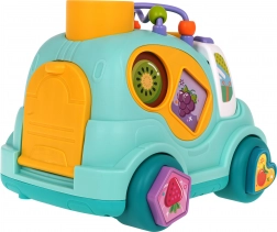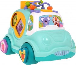 Denne farverige bus giver børn timevis af leg og læring i ét. På siderne og på hjulene finder børn åbninger til formsortering, og på taget er der en åbning til bolde, som de med glæde kan slå ned med hammeren. Boldene har rasleindsatser indeni, så legen bliver endnu sjovere og mere sansestimulerende.