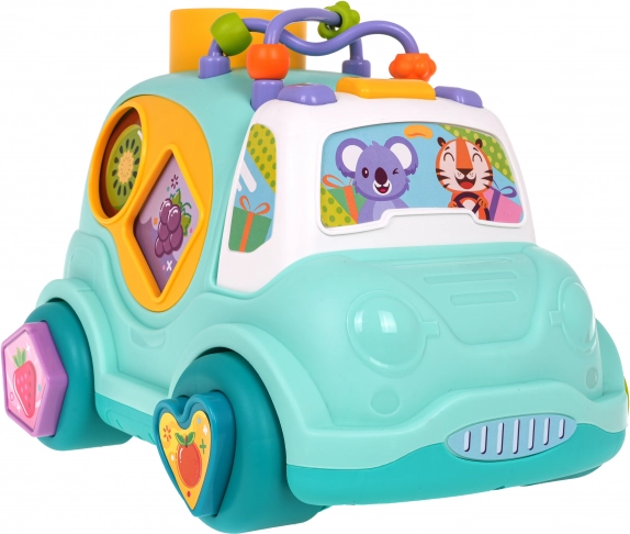 Børn øver genkendelse af former og koordination takket være åbningerne på siderne og de unikke åbninger direkte på bussens hjul.