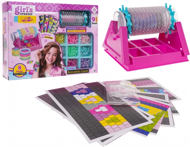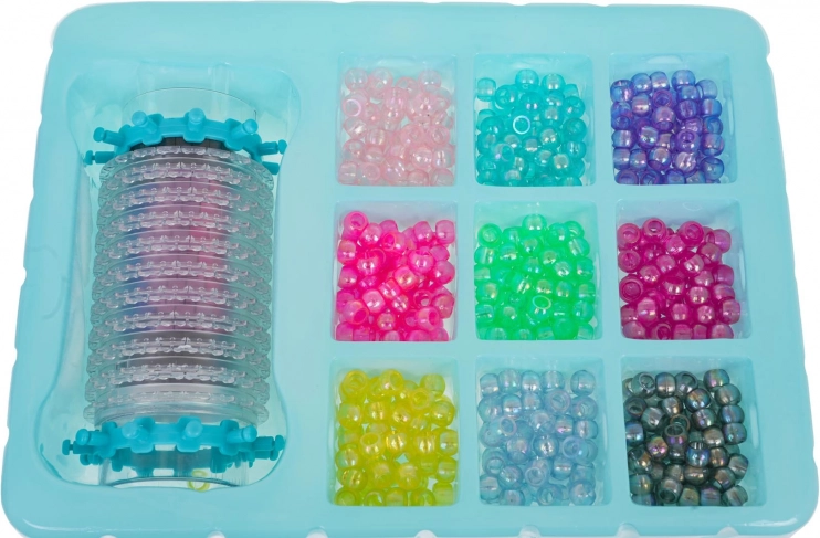 Dette komplette sæt gør det let og sjovt for børn at skabe originale armbånd. Sæt blot plasttuben på soklen, hæld perlerne i de overskuelige rum, vælg et mønster fra skabelonen eller skab efter egen fantasi, og begynd at væve fra højre mod venstre. Sættet er farverigt, intuitivt og ideelt til de første skridt i håndarbejde.