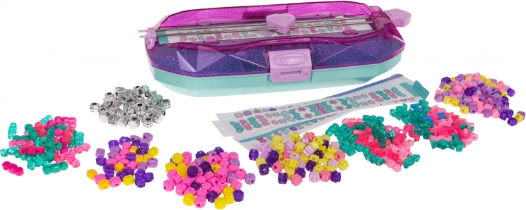 Dette veludstyrede sæt er ideelt til små skabere, der vil designe og lave deres egne unikke armbånd. Takket være maskinen med opbevaringsplads er arbejdet med perler overskueligt og bekvemt – træk blot linen, sæt perlerne på, og træk det færdige mønster af. Børn kan skabe efter de medfølgende 15 mønsterskabeloner eller slippe fantasien løs.