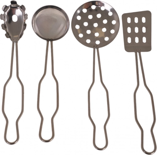 Der medfølger også tænger, øse, palet og hulske – alt hvad børn behøver til madlavning og servering.