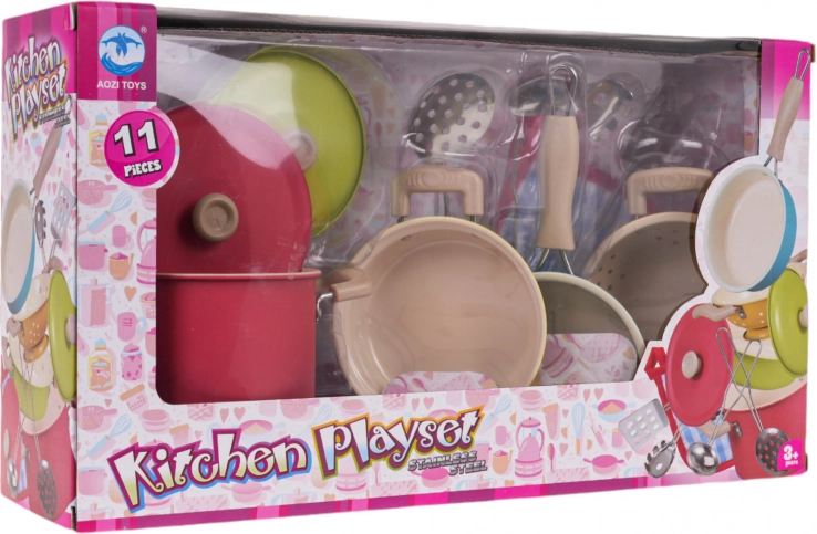 - 11 dele – komplet udstyr til rolleleg i køkkenet