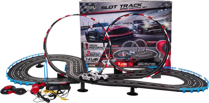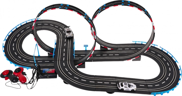 - konstruktionsdele til sporet, - 2 køretøjer, - 2 fjernbetjeninger, - USB-strømforsyningskabel til adapter. |