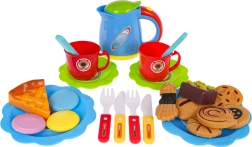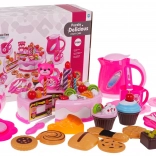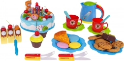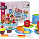 Tallerkener, bestik, kopper, tekande, cupcakes, småkager og roulade – alt til servering og fælles leg med venner.